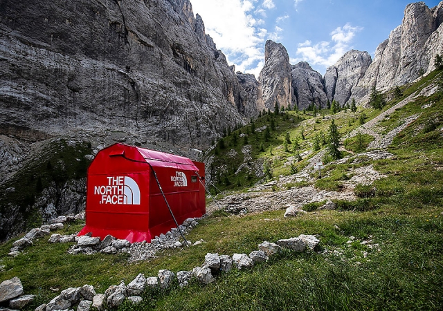 Pop-up trgovina v obliki šotora za kampiranje je del akcije »Pinnacle Project by The North Face «, nastala pa je v sodelovanju z nizozemsko agencijo First Day of Spring. V njej prodajajo zbrane predmete plezalskih legend, kot so Xavier de le Rue, Alex Honnold, Conrad Anker, Simone Moro in Caroline Ciavaldini.