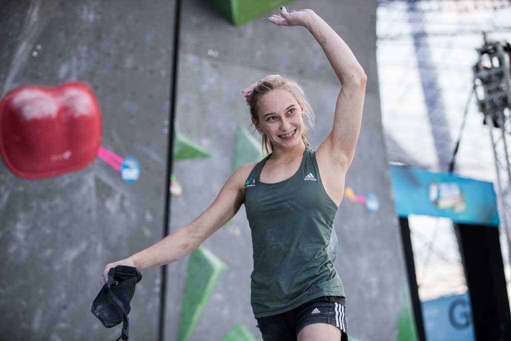 Ganbretova je vodila že po kvalifikacijah in polfinalu, tretjo zmago sezone pa je potrdila s prepričljivim finalnim nastopom, v katerem je rešila vse štiri balvanske probleme v najmanjšem številu poskusov.